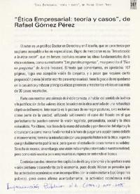 Ética empresarial: teoría y casos, de rafael Gómez Pérez [artículo].