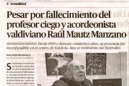 Pesar por fallecimiento del profesor ciego y acordeonista valdiviano Raúl Mautz Manzano [artículo] Juan Carlos Hernández G.