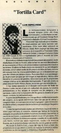 "Tortilla Card" [artículo] / Luis Sepulveda. Análisis (Revista : Santiago, Chile) Número 365, Enero 14 al 20, 1990, página 38 1 página : ilustración en blanco y negro ; 28 cm. .