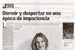 Dormir y despertar en una época de impaciencia [entrevista] / [artículo] : Por Cristóbal Gaete. El Sur (Diario : Concepción, Chile) Marzo 13, 2022, página 6 (suplemento "KU") 1 página : ilustraciónes en color ; 37 cm. .