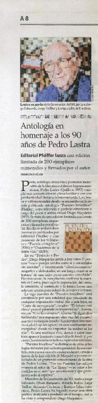 Antología a los 90 años de Pedro Lastra [artículo] Francisco Véjar.