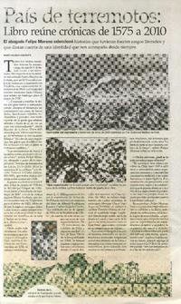 País de terremotos : Libro reúne crónicas de 1575 a 2010 [artículo] María Soledad Ramírez R.