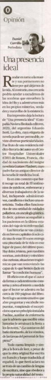 Una presencia ideal [artículo]. Diario Austral (Diario : Valdivia, Chile)-- jun. 19, 2022, p. 18. .