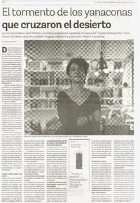 El tormento de los yanaconas que cruzaron el desierto [entrevista] / [artículo] : Por Amelia Carvallo A. El Austral (Osorno, Chile) Agosto 28, 2022, página 10 (suplemento "KU") El Llanquihue (Diario : Chiloé, Chile) Agosto 28, 2022, página 10 (suplemento "domingo") El Austral (Valdivia, Chile) Agosto 28, 2022, página 1 (suplemento "KU") El Mercurio de Valparaíso (Diario : Chile) Agosto 28, 2022, página 1 (suplemento "KU") 1 página : ilustración en blanco y negro ; 39 cm. .