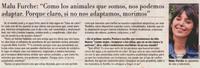 Malu Furche: "Como los animales que somos, nos podemos adaptar. Porque claro, si no nos adaptamos, morimos". [artículo]. El Mercurio (Diario : Santiago, Chile)-- abr. 24, 2022, p. E5. .