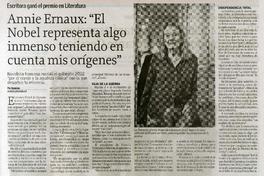 Annie Ernaux: "El Nobel representa algo inmenso teniendo en cuenta mis orígenes" [artículo].