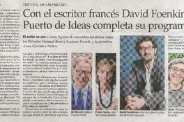 Con el escritor francés David Foenkinos, Puerto de Ideas completa su programación [artículo] / María Soledad Ramírez. El Mercurio (Diario : Santiago, Chile) octubre 12, 2022, página A8 1 página : ilustración en color ; 15 cm. .