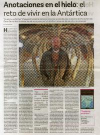 Anotaciones en el hielo el reto de vivir en la Antártica / [artículo] : Cristóbal Gaete. El Mercurio (Diario : Valparaíso, Chile) septiembre 18, 2022, página 3, (Suplemento "Ku") El Llanquihue (Diario : Puerto Montt, Chile) septiembre 18, 2022, página 11 1 página : lustración en color ; 38 cm. .