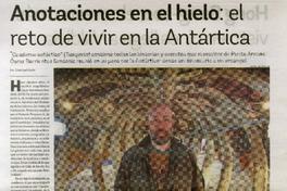 Anotaciones en el hielo el reto de vivir en la Antártica [artículo] : Cristóbal Gaete.