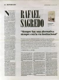 Rafael Sagredo "Siempre hay una alternativa, siempre está la vía intitucional [entrevista] / [artículo] : Pablo Marín Castro. La Tercera (Diario : Santiago, Chile) septiembre 4, 2022, página30-31 2 páginas : ilustración en color ; 37, 5 cm. .