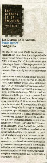 Los diarios de la anguila [artículo] / Andrés Gómez Bravo. La Tercera (Diario : Santiago, Chile) septiembre 3, 2022, pagina 54 1 pagina : ilustración en color ; 26 cm. .