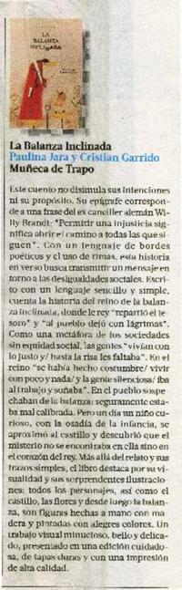 Materias: Autoras chilenas - Autores chilenos - Garrido, Cristian - La balanza inclinada - Jara Straussmann, Paulina