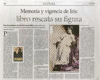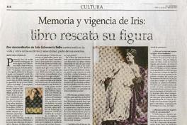 Memoria y vigencia de Iris, Libro rescata su figura [entrevista] [artículo] : María Teresa Cardenas M.