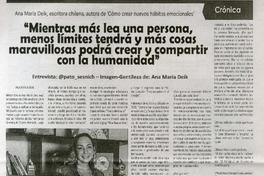 Materias: Autoras chilenas - Entrevistas - Deik, Ana María - Cómo crear nuevos hábitos emocionales