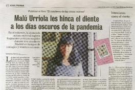 Malú Urriola les hinca el diente a los días oscuros de la pandemia [artículo] / Leonardo Sanhueza. Las Últimas Noticias (Diario : Santiago, Chile) Octubre 24, 2022, página 42 1 página : ilustracion en color ; 21 cm. .