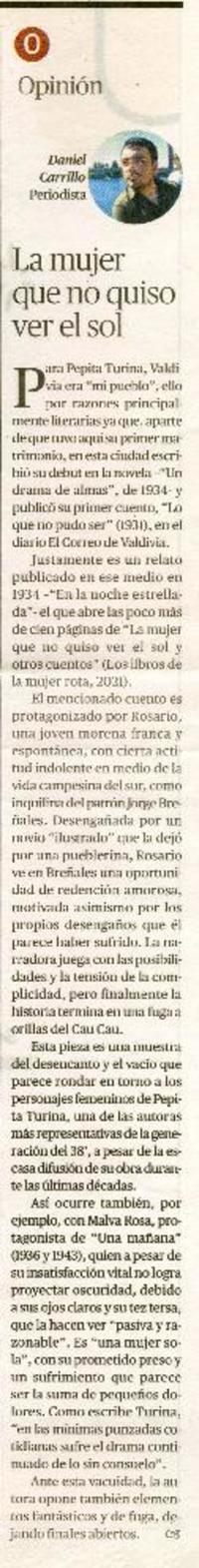 La mujer que no quiso ver el sol [artículo] Daniel Carrillo.