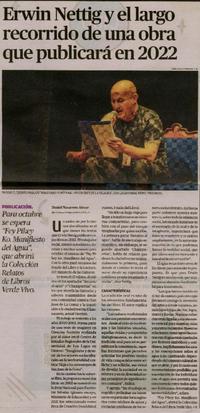 Erwin Nettig y el largo recorrido de una obra que publicará en 2022 [artículo] Diario Austral (Diario : Valdivia, Chile) Julio 31, 2022, página 19 (suplemento "KU") 1 página : ilustración en color ; 35 cm. .