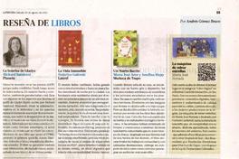 Reseña de libros [artículo] / Andrés Gómez Bravo. La Tercera (Diario : Santiago, Chile) agosto 20, 2022, página 55 1 página : ilustración a color ; 19,5 cm. .