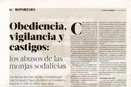 Obediencia, vigilancia y castigos los abusos de las monjas sodalicias / [artículo] : Andrés Gómez Bravo. La Tercera (Diario : Santiago, Chile) julio 24, 2022, página 26 2 página : ilustración en color ; 37,5 cm. .