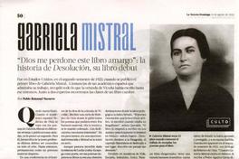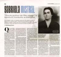 Gabriela Mistral "Dios me perdone este libro amargo" la historia de Desolación, su libro debut/ [artículo] : Pablo Retamal Navarro. La Tercera (Diario : Santiago, Chile) agosto 14, 2022, página 50 1 página : ilustracion en blanco y negro ; 26 cm. .