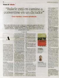 "Bukele está en camino a convertirse en un dictador" [entrevista] / [artículo] : Por Alejandro Jofré. La Tercera (Diario : Santiago, Chile) octubre 8, 2022, página 16-17 2 paginas : ilustración en color ; 38 cm. .