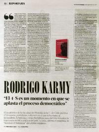 Rodrigo Karmy " El 4-S es un momento en que se aplasta el proceso democrático [entrevista] / [artículo] : Por Pablo Marín Castro. La Tercera (Diario : Santiago, Chile) septiembre 18, 2022, página 22-23 2 paginas : ilustración en color ; 37, 5 cm. .