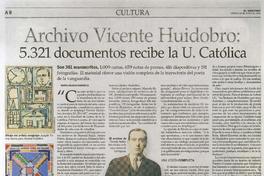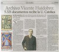 Archivo Vicente Hidobro : 5.321 documentos recibe la U. Católica [artículo] María Soledad Ramírez.