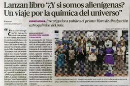 Lanzan libro "¿Y si somos alienígenas? Un viaje por la química del universo" [artículo] El Austral (Diario : Temuco, Chile)-- mar. 17, 2022, p. 19. .
