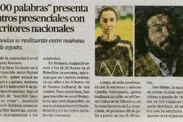 "Araucanía en 100 palabras" presenta ciclo de encuentros presenciales con reconocidos escritores nacionales [artículo] El Austral (Diario : Temuco, Chile)-- jul. 4, 2022, p. 19. .
