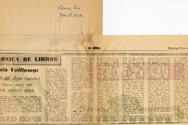 Juan del agua (novela) [artículo] / Alfonso Riera. El Siglo (Diario : Santiago, Chile)-- ene. 13, 1963, p. 2. .