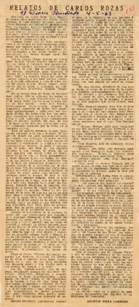 Relatos de Carlos Rozas [artículo] / Agustín Billa Garrido. El Ilustrado (Diario : Santiago, Chile)-- mayo 4, 1963, s/n. .