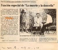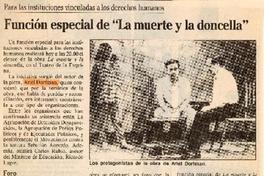 Función especial de "La muerte y la doncella". [artículo] La Epoca (Diario : Santiago, Chile)-- mar. 14, 1991, p. 28. .