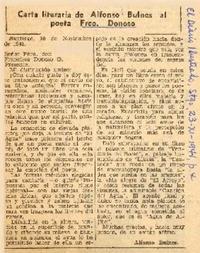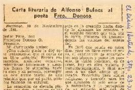 Carta literaria de Alfonso Bulnes al poeta Fco. Donoso [artículo] / Alfonso Bulnes. El Ilustrado (Diario : Santiago, Chile)-- nov. 23, 1941, p. 4. .