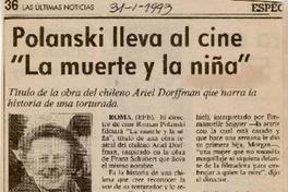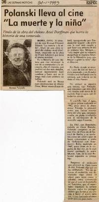 Polanski lleva al cine "La muerte y la niña" [artículo] Las Últimas Noticias (Diario : Santiago, Chile)-- ene. 31, 1993, p. 36. .