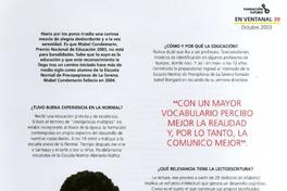 Mabel Condemarín, "Con un mayor vocabulario percibo mejor la realidad y, por lo tanto, la comunico mejor" [entrevista] / [artículo] : Magdalena Piñera E. Ventanal (Revista : Santiago, Chile)-- no. 195, 2022, p. 45. .