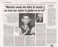 Muchas veces me miro al espejo y no creo ser quien la gente ve en mí" [artículo] / Jazmín Lolas. Las Últimas Noticias (Diario : Santiago, Chile) septiembre 27, 2022, pagina 30 1 página : ilustración en blanco y negro ; 23 cm. .