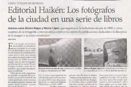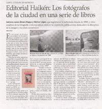 Editorial Haikén, los fotógrafos de la ciudad en una serie de libros [artículo] / Iñigo Díaz. El Mercurio (Diario : Santiago, Chile) agosto 11, 2022, página A7 1 página : ilustración en color ; 22 cm. .