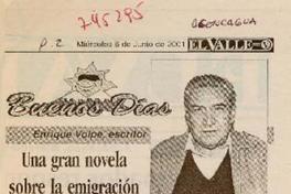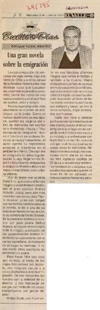Una gran novela sobre la emigración [artículo] / Enrique Volpe. El Valle (Diario : Aconcagua, Chile)-- jun. 6, 2001, p. 2. retr. .