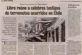 Libro reúne a célebres testigos de terremotos ocurridos en Chile [entrevista] / [artículo] : Fabián Llanca. Las Últimas Noticias (Diario : Santiago, Chile)-- jul. 29, 2022, p. 38. .