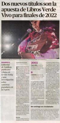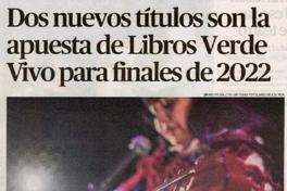 Dos nuevos títulos son la apuesta de libros verde vivo para finales de 2022 [artículo] / Daniel Navarrete Alvear. Austral (Diario : Temuco, Chile) mayo 15, 2022, página 19 1 página : ilustración en color ; 40 cm. .