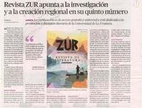 Revista ZUR apunta a la investigación y a la creación regional en su quinto número. [artículo]