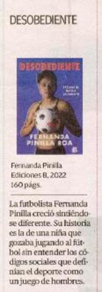 Materias: Autoras chilenas - Pinilla Roa, Fernanda - Desobediente