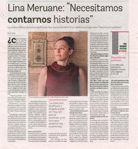 Lina Meruane: "Necesitamos contarnos historias" [entrevista] / [artículo] : Por C. Gaete. Diario Austral (Diario : Valvidia, Chile)-- ene. 9, 2022, p. 1 (suplemento "KU") El Sur (Diario : Concepción, Chile) Enero 9, 2022, página 7 .