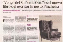 Vengo del sillón de otro" es el nuevo libro del escritor Ernesto Pincheira [artículo].