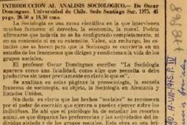 Materias: Autores chilenos - Domínguez Correa, Oscar - Introducción al análisis sociológico