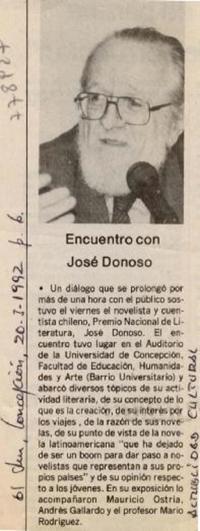 Encuentro con José Donoso [artículo]. El Sur (Diario : Concepción, Chile)-- ene. 20, 1992, 6. .