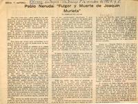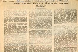 Pablo Neruda : "Fulgor y muerte de Joaquín Murieta" [artículo] Hernán del Solar.