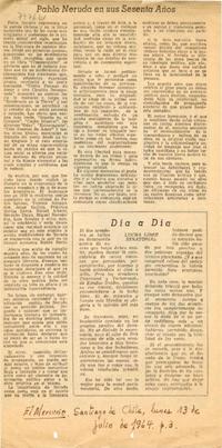 Pablo Neruda en sus sesenta años [artículo] El Mercurio (Santiago, Chile)-- jul. 13, 1964, p. 3. .