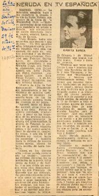 Neruda TV española [artículo] La Nación (Diario : Santiago, Chile)-- oct. 29, 1967. retr. .