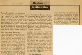 Neruda recitó en Londres [artículo] Las Noticias de Última Hora (Diario : Santiago, Chile)-- jul. 25, 1967, p. 5. .